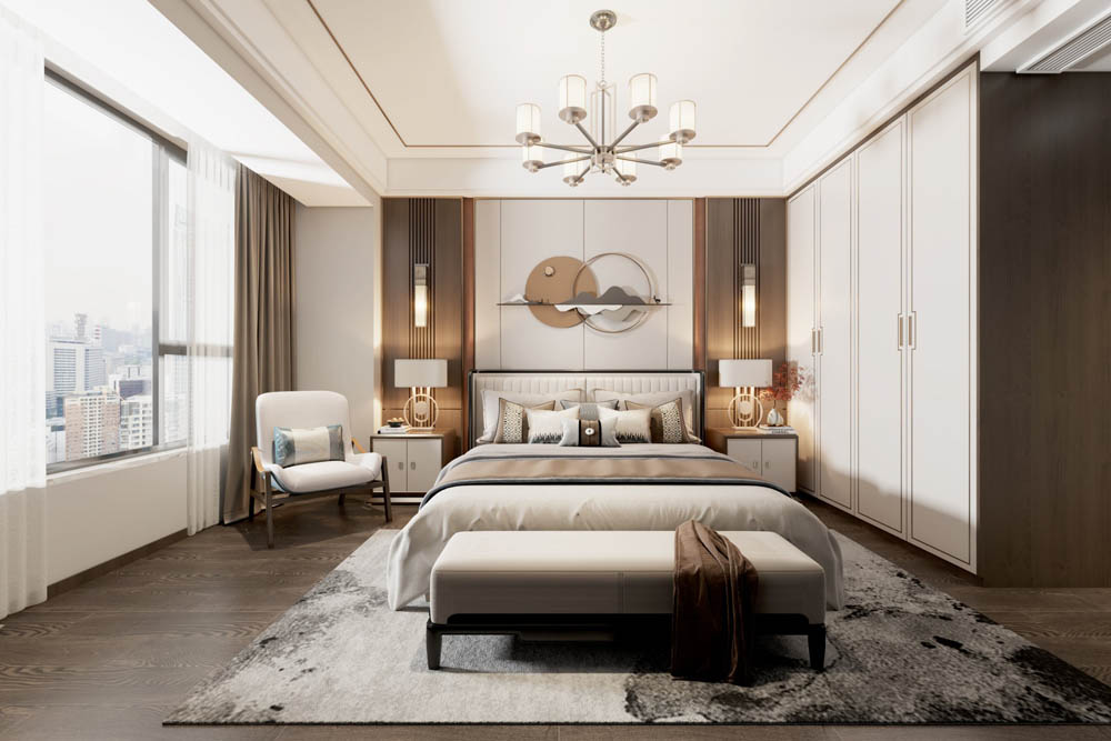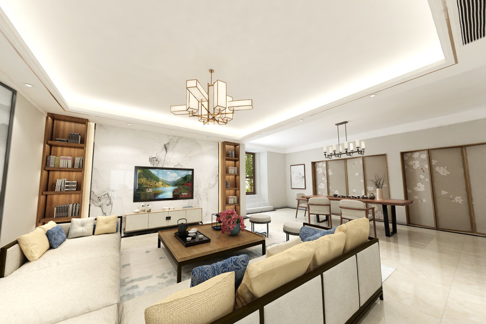 新中式風(fēng)格是富含千年底蘊(yùn)的東方中式風(fēng)格與摩登時尚的現(xiàn)代風(fēng)格彼此相遇結(jié)合,其精華之處在于以“一器一物皆是景,細(xì)微之處有乾坤”的古意為出發(fā)點,追隨時代的潮流,功能空間相互滲透,色彩空間相互碰撞,消除了傳統(tǒng)中式風(fēng)格的沉悶和厚重,力圖在惹人癡迷的現(xiàn)代輕奢簡約中彰顯出傳統(tǒng)中式意蘊(yùn)的雅致逸趣。